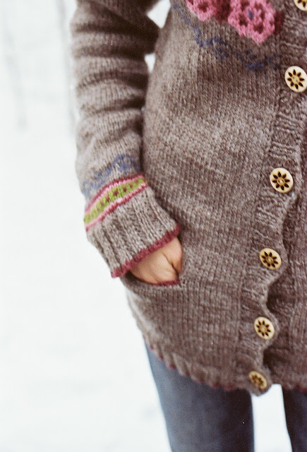 Az eredetin nincs zseb, de nekem olyan minden kardigánomon muszáj, hogy legyen, úgyhogy kapott kettőt.